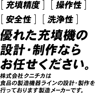 中でも液体・半固形用の充填機の製造技術に強みを持っており、小型で汎用性の高い自社充填機を多数ラインナップいたしております。